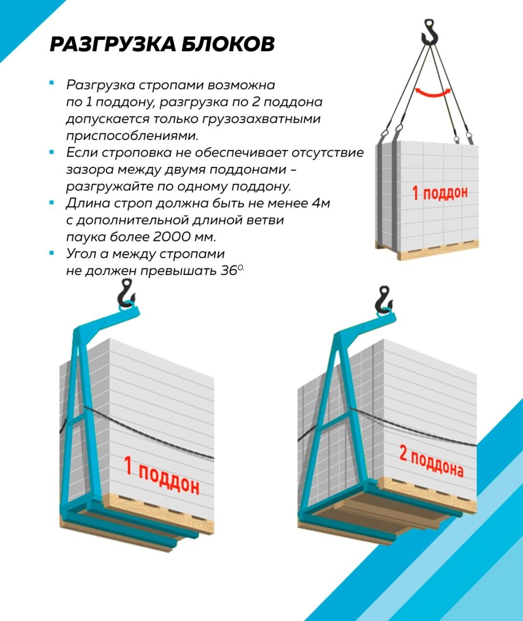Разгрузка манипулятором происходит следующим образом: манипулятор поднимает поддон с блоками и аккуратно опускает его в указанное место. Это позволяет избежать повреждений блоков и ускорить процесс разгрузки.